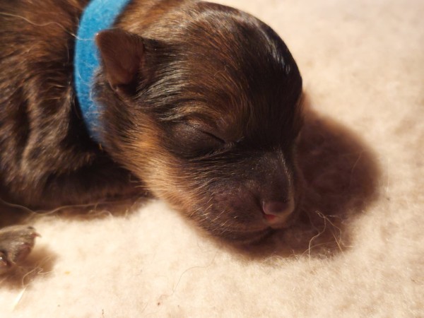 De vierde en laatste pup kwam om 18.00 uur ter wereld. Dit is een reutje van 230 gram.